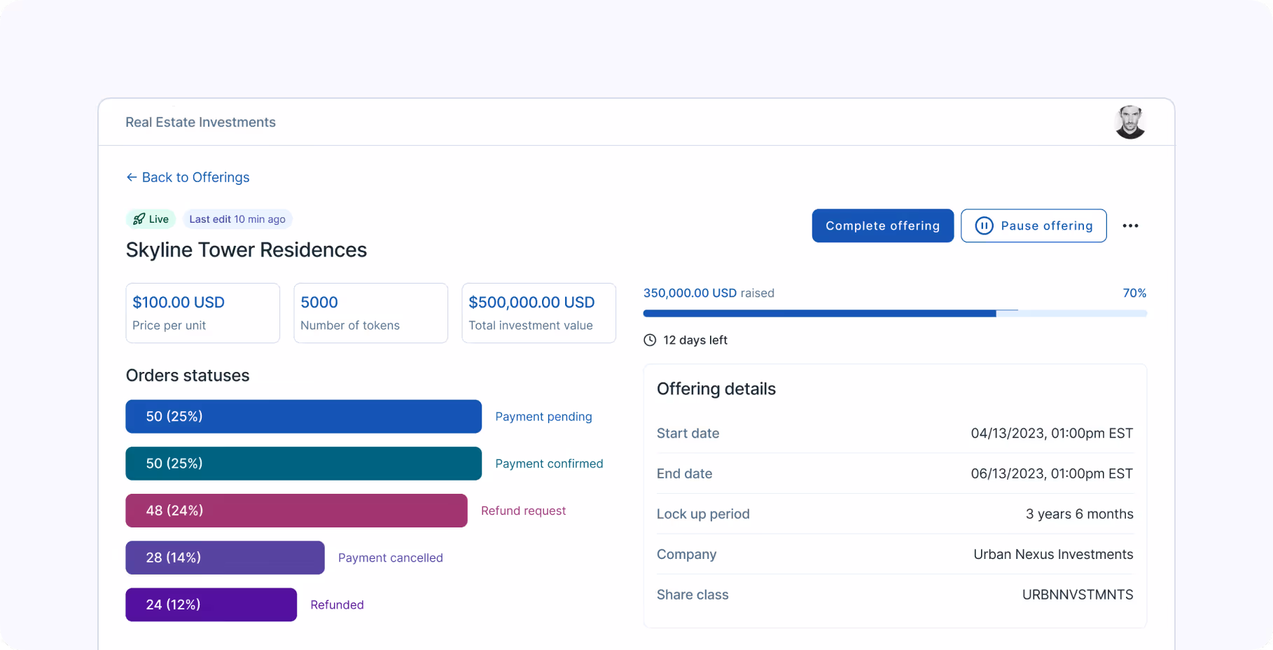 Easily create a branded digital platform for your assets. Our white-label platform empowers you to issue, distribute, and manage tokens effortlessly, ensuring a seamless and compliant experience at every step.